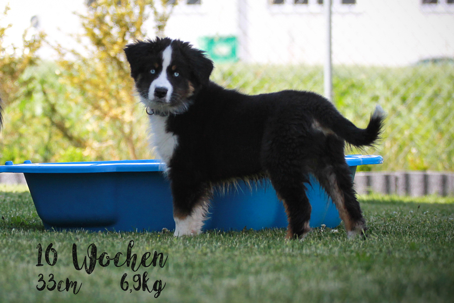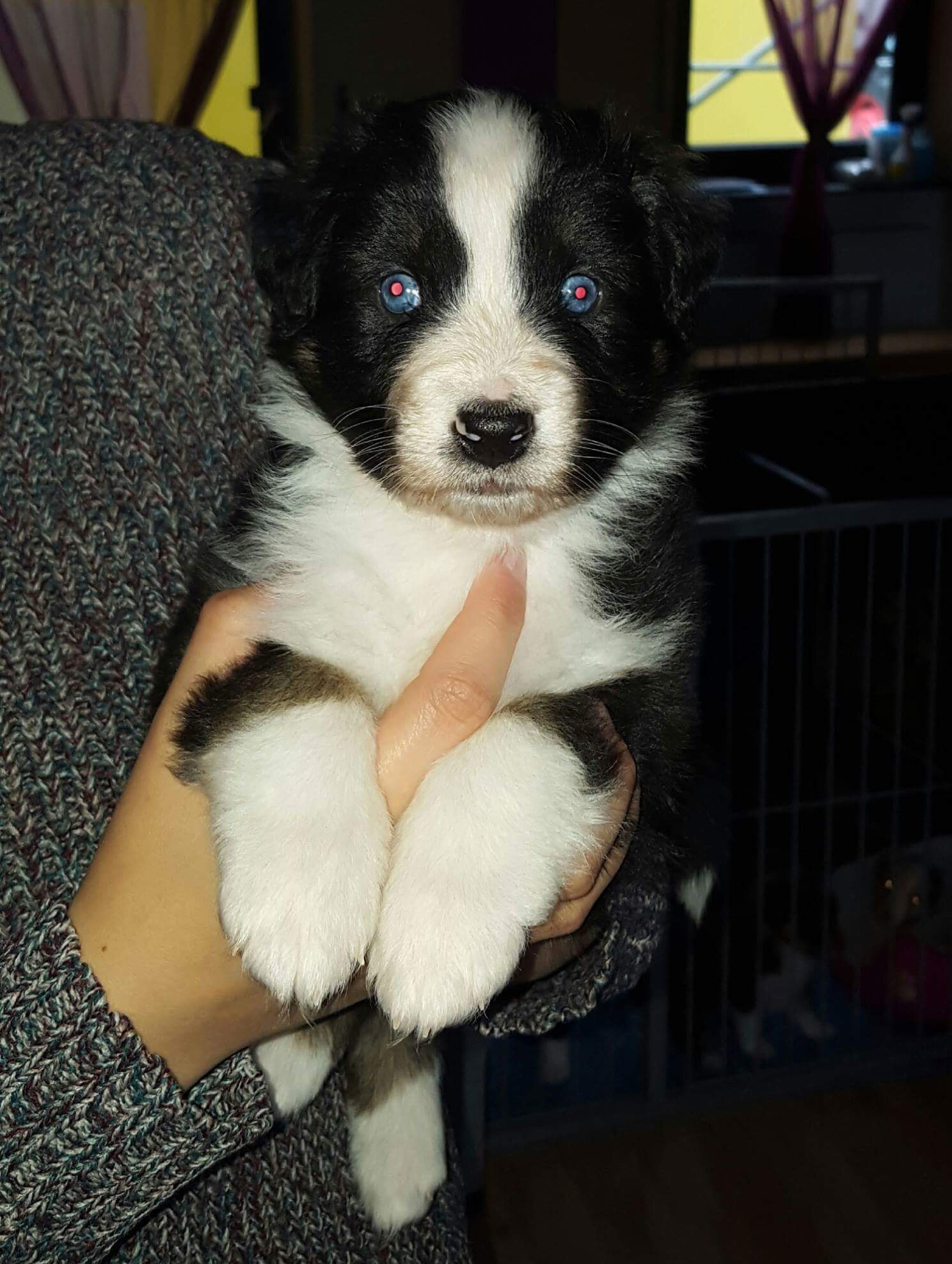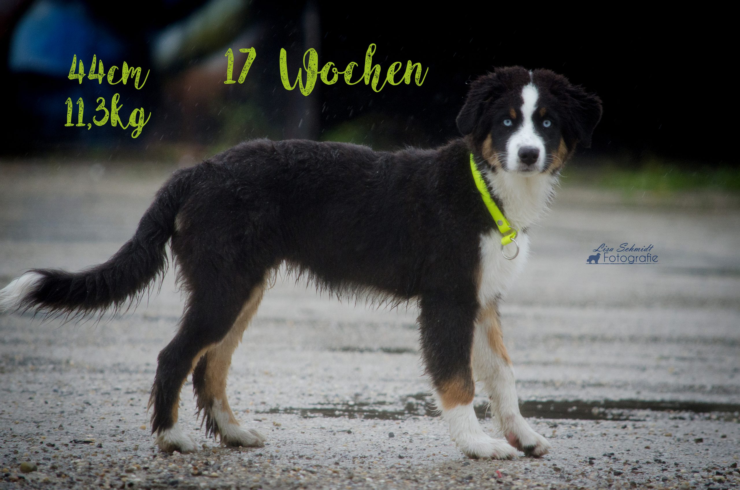 Er war lange geplant und ich hatte sooo viele Anforderungen an ihn bzw. an seine Eltern: freundlich und offen gegenüber Menschen zu sein, hatte oberste Priorität. Er sollte eher Arbeitslinie und möglichst klein und wendig sein. Im Agility macht das einfach mehr Sinn und da ich für mich eigentlich nie einen Rüden wollte, sollte er dann wenigstens „Hündinnen-Format“ haben 😉 Optisch hatte ich auch einige Ansprüche: Schwarz, das passt gut zum Blue Merle und hätte mir schon immer gut gefallen. Maximal eine schmale Blesse, damit er nicht für einen Berner Sennenhund gehalten wird. Ich habe deutschlandweit und darüber hinaus mit Züchtern Kontakt aufgenommen, bin mit meiner Mama einmal quer durch Deutschland zu einem Wurf gefahren, aber die Suche gestaltete sich schwierig. Durch Zufall stieß ich dann auf einen frisch geschlüpften Wurf bei Koblenz. Die Welpen hatten für meinen Geschmack alle etwas viel Weiß, nur ein schwarzer Rüde könnte optisch erwachsen evtl. doch ok sein. Ich bin in der Hinsicht echt wählerisch, aber meiner Meinung nach sollte mir mein Hund schon auch gefallen 😀