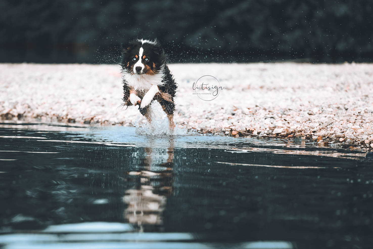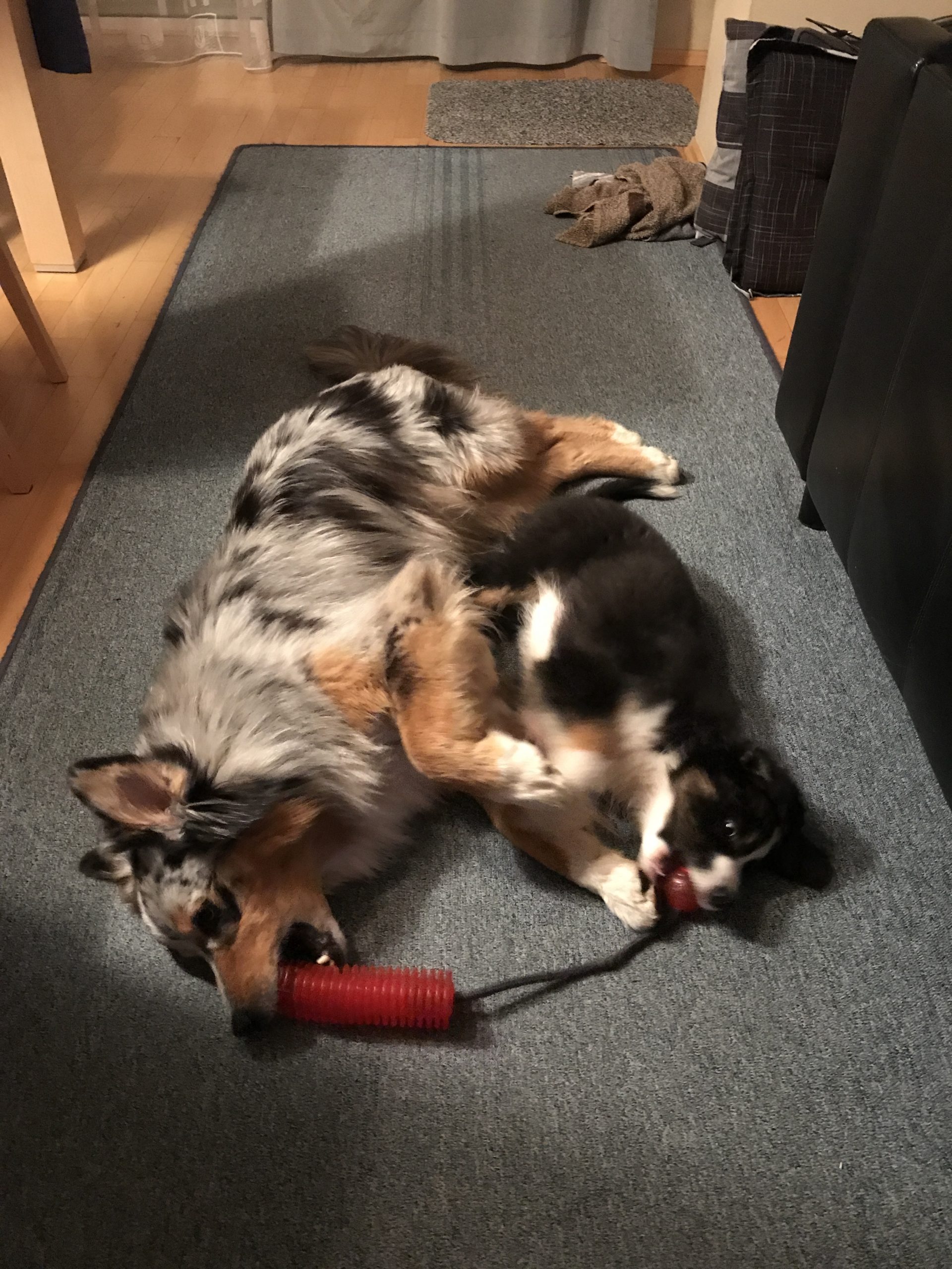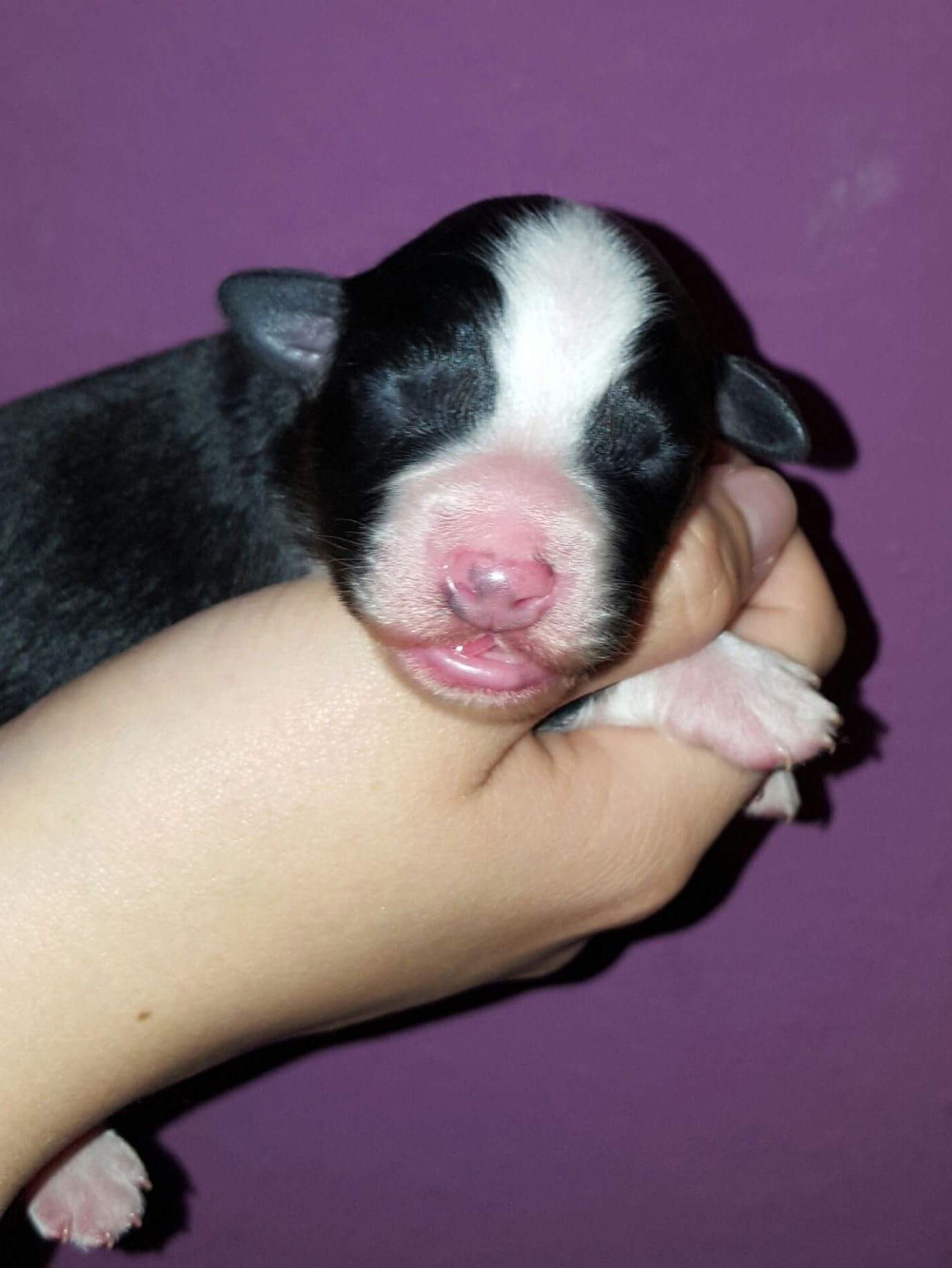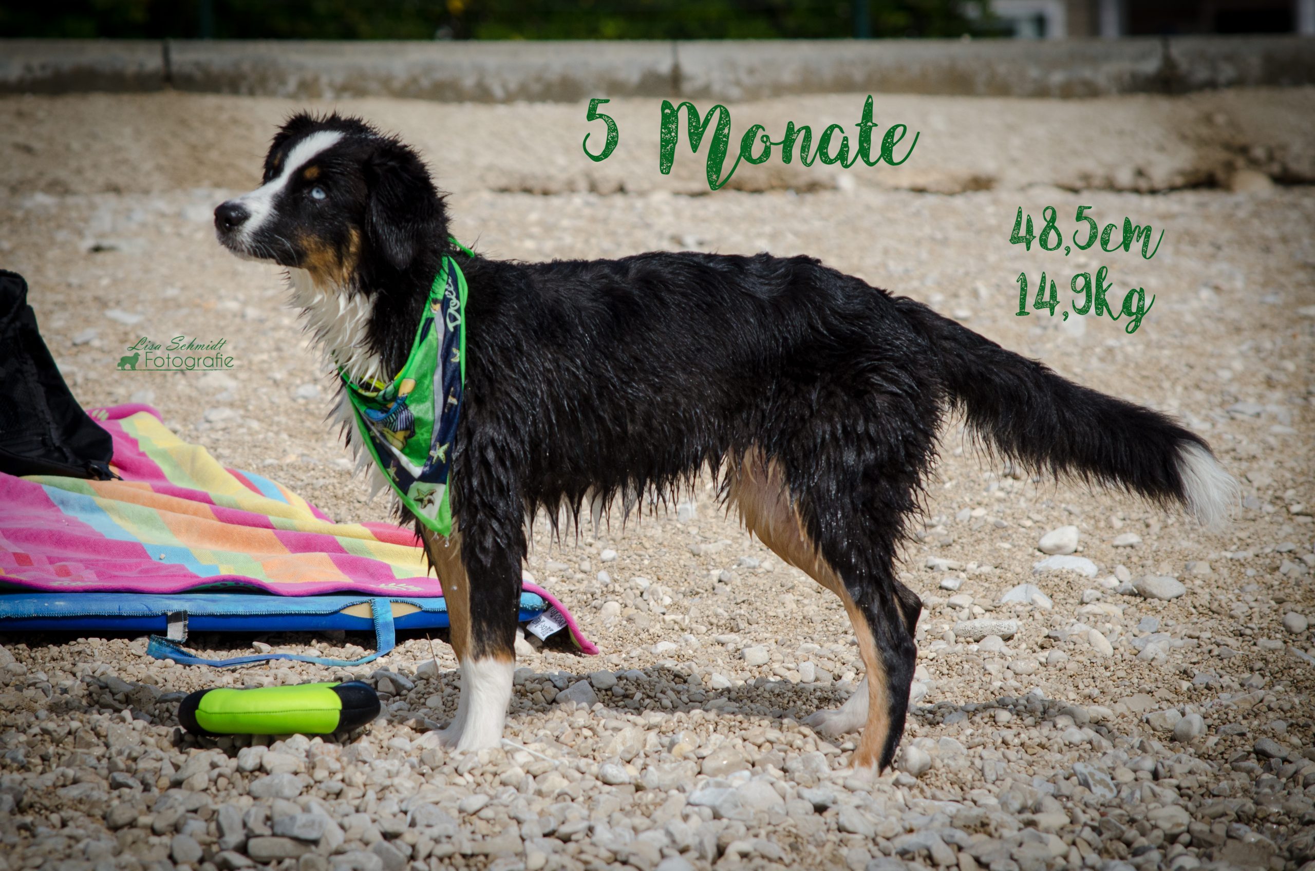 Er war lange geplant und ich hatte sooo viele Anforderungen an ihn bzw. an seine Eltern: freundlich und offen gegenüber Menschen zu sein, hatte oberste Priorität. Er sollte eher Arbeitslinie und möglichst klein und wendig sein. Im Agility macht das einfach mehr Sinn und da ich für mich eigentlich nie einen Rüden wollte, sollte er dann wenigstens „Hündinnen-Format“ haben 😉 Optisch hatte ich auch einige Ansprüche: Schwarz, das passt gut zum Blue Merle und hätte mir schon immer gut gefallen. Maximal eine schmale Blesse, damit er nicht für einen Berner Sennenhund gehalten wird. Ich habe deutschlandweit und darüber hinaus mit Züchtern Kontakt aufgenommen, bin mit meiner Mama einmal quer durch Deutschland zu einem Wurf gefahren, aber die Suche gestaltete sich schwierig. Durch Zufall stieß ich dann auf einen frisch geschlüpften Wurf bei Koblenz. Die Welpen hatten für meinen Geschmack alle etwas viel Weiß, nur ein schwarzer Rüde könnte optisch erwachsen evtl. doch ok sein. Ich bin in der Hinsicht echt wählerisch, aber meiner Meinung nach sollte mir mein Hund schon auch gefallen 😀