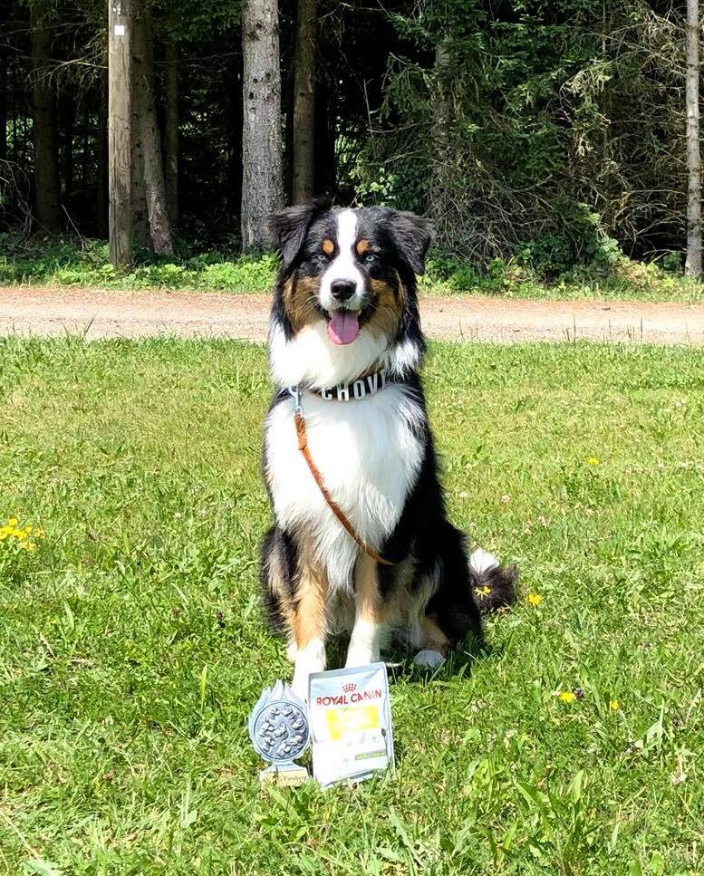 Als ich ihn mit 18 Monaten röntgen und auswerten ließ, bekamen wir leider den Zufallsbefund LÜW Typ 3, was ein 7x höheres Risiko eines Bandscheibenvorfalls bedeutet. Damals war das eine niederschmetternde Diagnose. Zum einen hätte ich Chovi wegen seines tollen Wesens gerne als Deckrüde gesehen, zum anderen stand plötzlich auch die sportliche Karriere eines jungen, fitten Hundes auf der Kippe. Und mit Karriere meine ich natürlich nur ein gelegentliches Hobby, aber trotzdem wäre es extrem traurig gewesen, dieses Kapitel schon wieder zu beenden. Nach vielen Telefonaten mit Physios, Chiros, Klinikleitern etc. habe ich mich dazu entschlossen, ihn trotzdem ganz normal trainieren und auch auf Turnieren starten zu lassen, solange er keine Einschränkungen zeigt. Ja, das Risiko und die Belastung waren deutlich größer als ohne Sport, aber seine Muskulatur eben auch. Wenn sich Beschwerden zeigen, dann normalerweise erst ab ca. 5 bis 6 Jahren. Also durfte er wenigstens die Zeit davor so verbringen, wie es ihm Freude bereitete. Heute bin ich sehr froh, so entschieden zu haben, weil ihm in dieser Hinsicht nie etwas gefehlt hat.