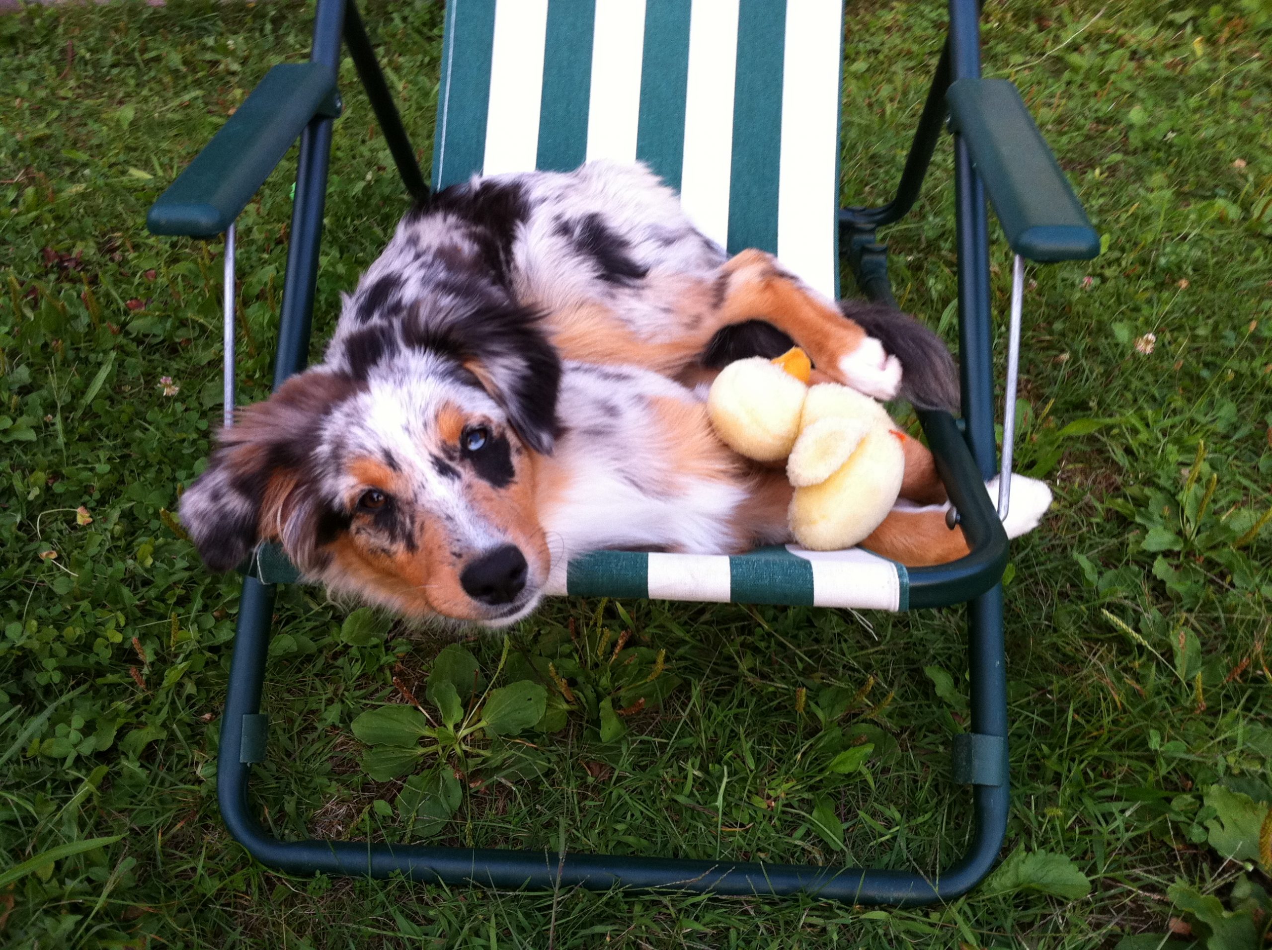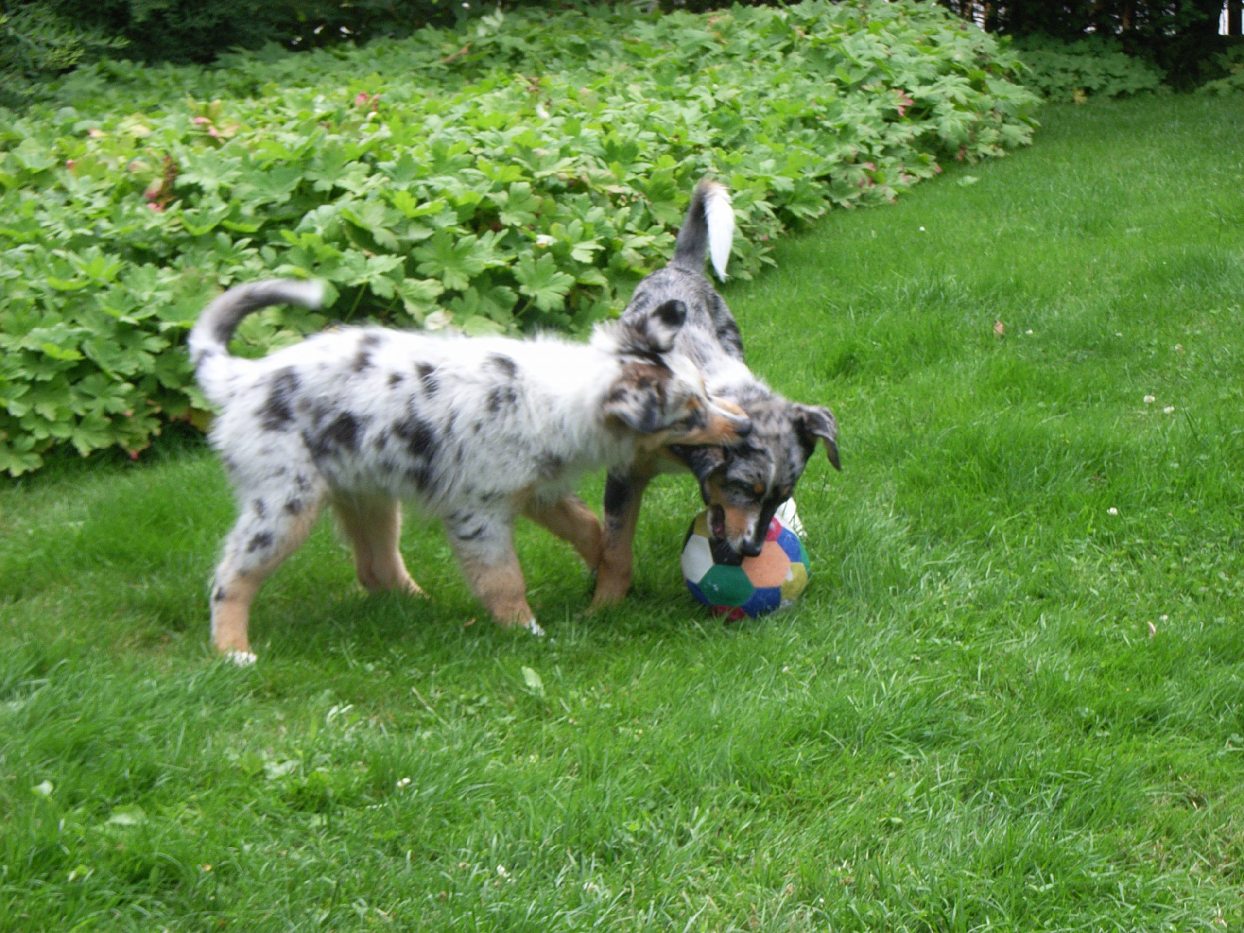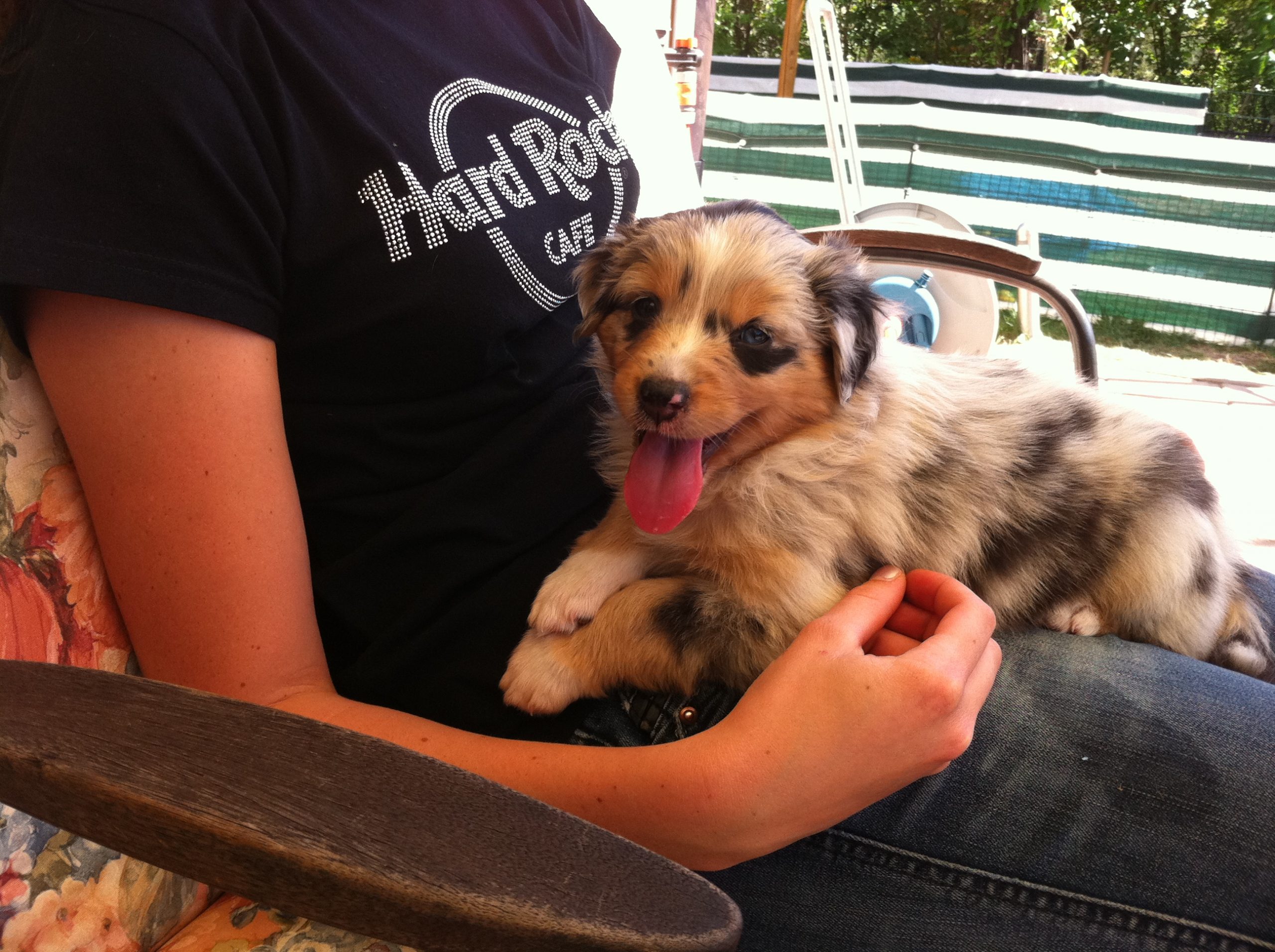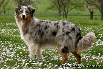 Meine Mama und ich haben 2011 das Internet nach Aussie Züchtern in Bayern durchforstet. Damals war das „Angebot“ noch ein Bruchteil von heute. Sie hat mit einer Züchterin telefoniert und uns für den geplanten Wurf angemeldet. Die Hündin ist allerdings leer geblieben und so ging die Suche von vorne los. Ich habe dann die Flowerpower Aussies in Fürth entdeckt, die zu dem Zeitpunkt zwei Würfe hatten und bei denen auch noch ein paar Welpen frei waren. So auch eine wunderschön gezeichnete Blue Merle Hündin namens Alisha, die gerade 4 Wochen alt war. Telefoniert, Besuchstermin vereinbart, verliebt und zugesagt. Meine Mama hätte sich fast noch in eine ältere Schwester verkuckt und ich wollte farbtechnisch eigentlich alles, nur kein Blue Merle 😀 aber sie war es trotzdem. Laut Züchter charakterlich ein gutes Mittelmaß und ich fragte mich noch warum diesen perfekt gezeichneten Welpe vor uns noch niemand haben wollte…