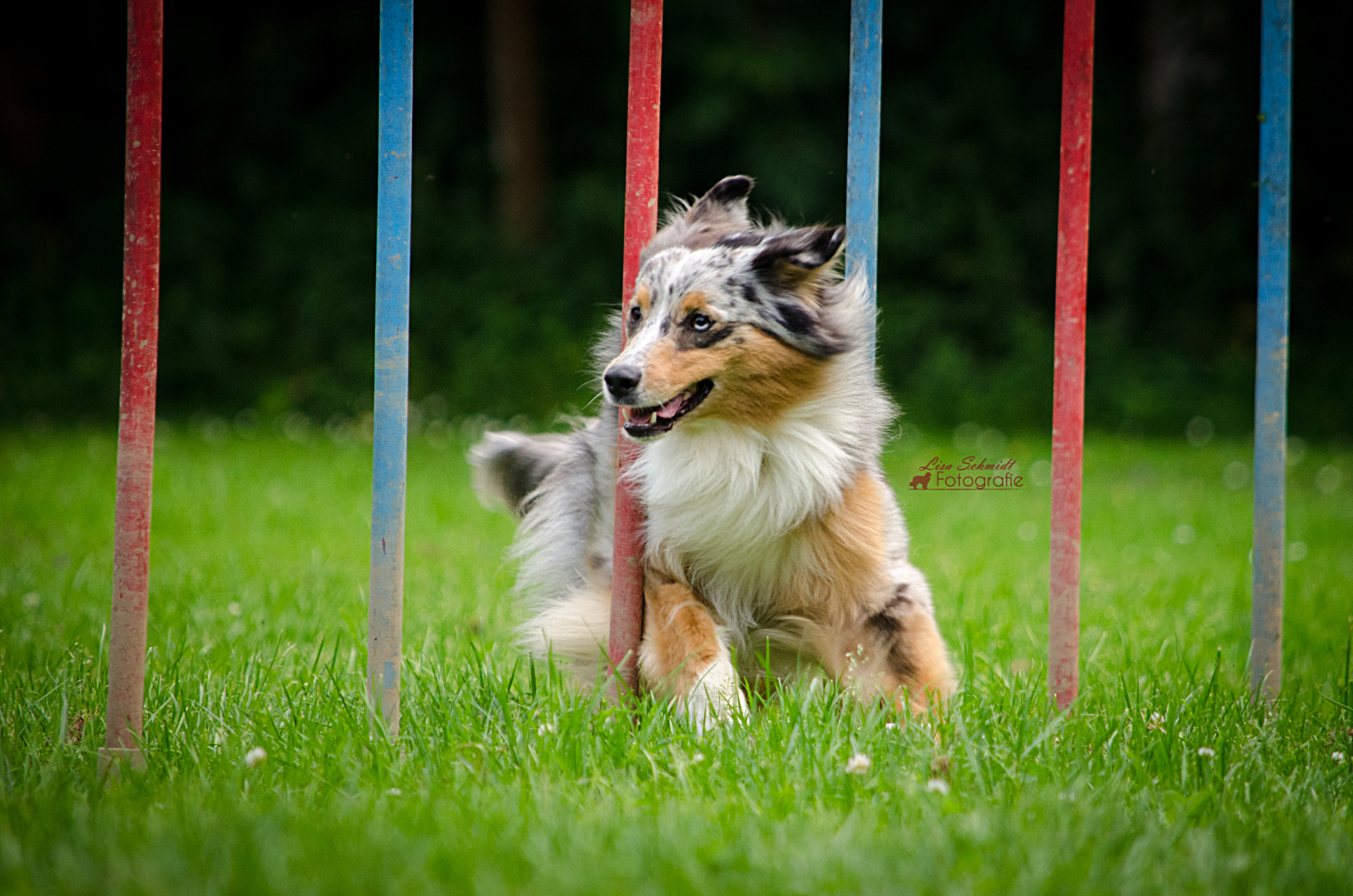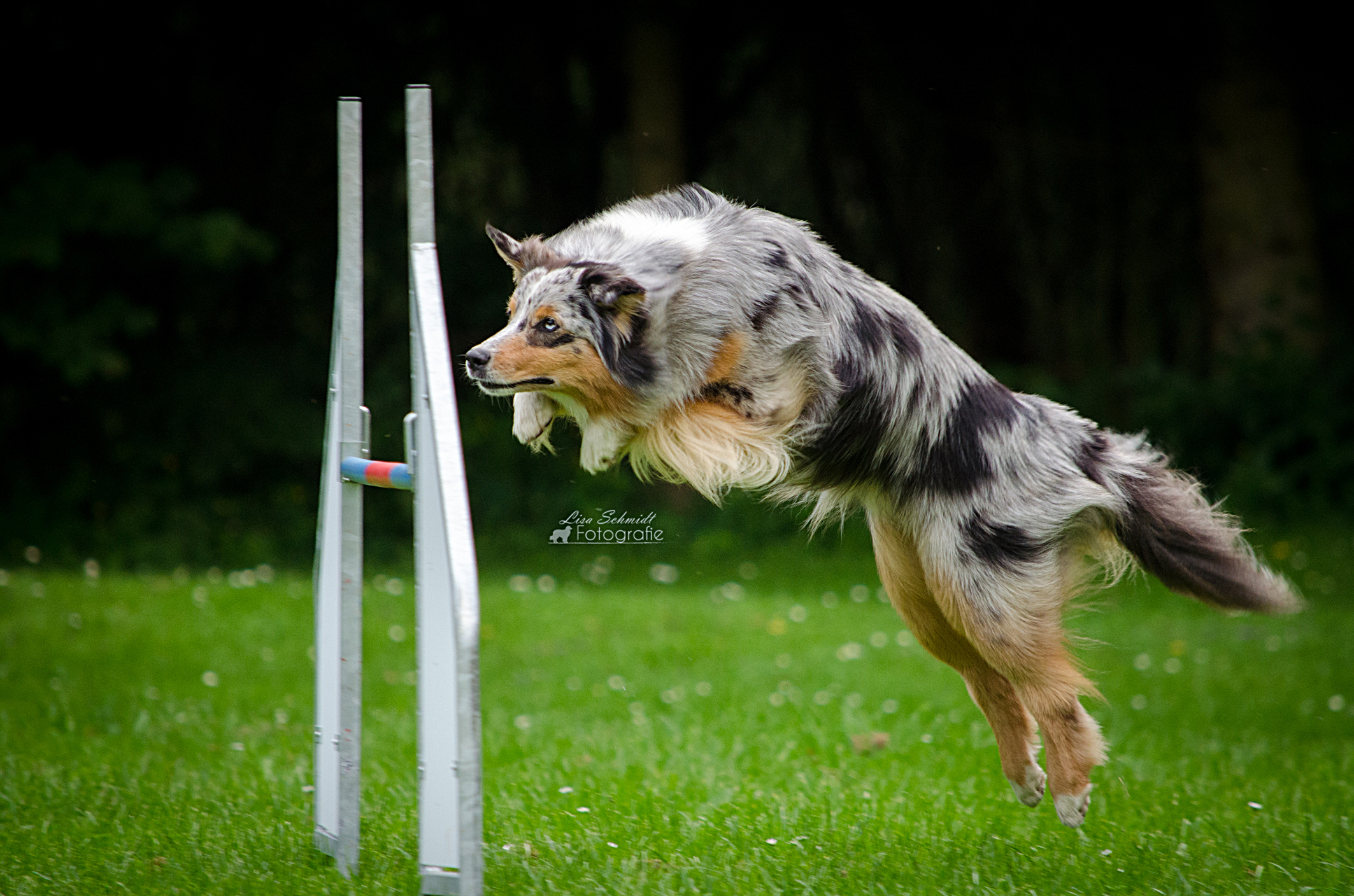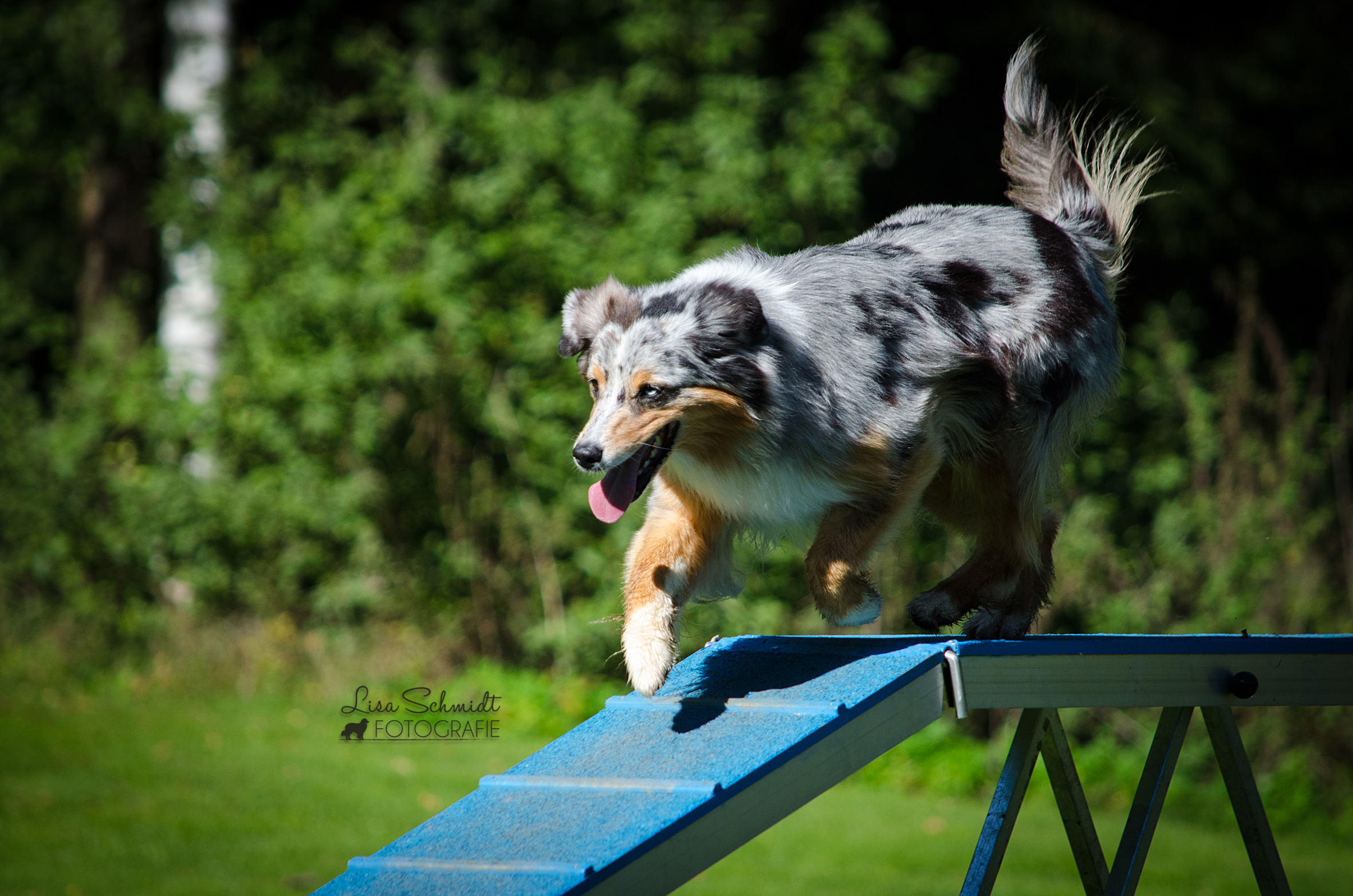 Trotz aller Probleme und Schwierigkeiten, die wir alle mehr oder weniger in den Griff bekommen haben, entfachte Tiva meine Leidenschaft für den Australian Shepherd. Sie war so begeisterungsfähig und machte einfach jeden Mist mit, der mir einfiel. Am Hundeplatz hatten wir alle Kurse durch, Agility gefiel uns beiden am Besten. So entdeckte ich durch sie auch meine Liebe zum Agi und auch wenn sie nie sonderlich gut darin war, machten uns die Turniere immer Spaß. Mit 8 Jahren nahm ich sie aus dem Sport, weil ihr Sprungstil immer schlechter wurde, auch wenn man keine medizinische Ursache dafür fand.